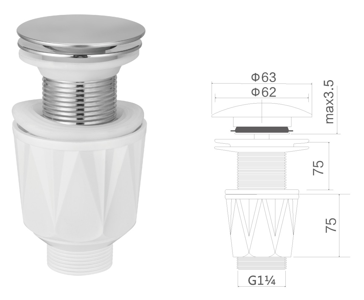 Brass waste for wash basin 1 1/4" clic-clac