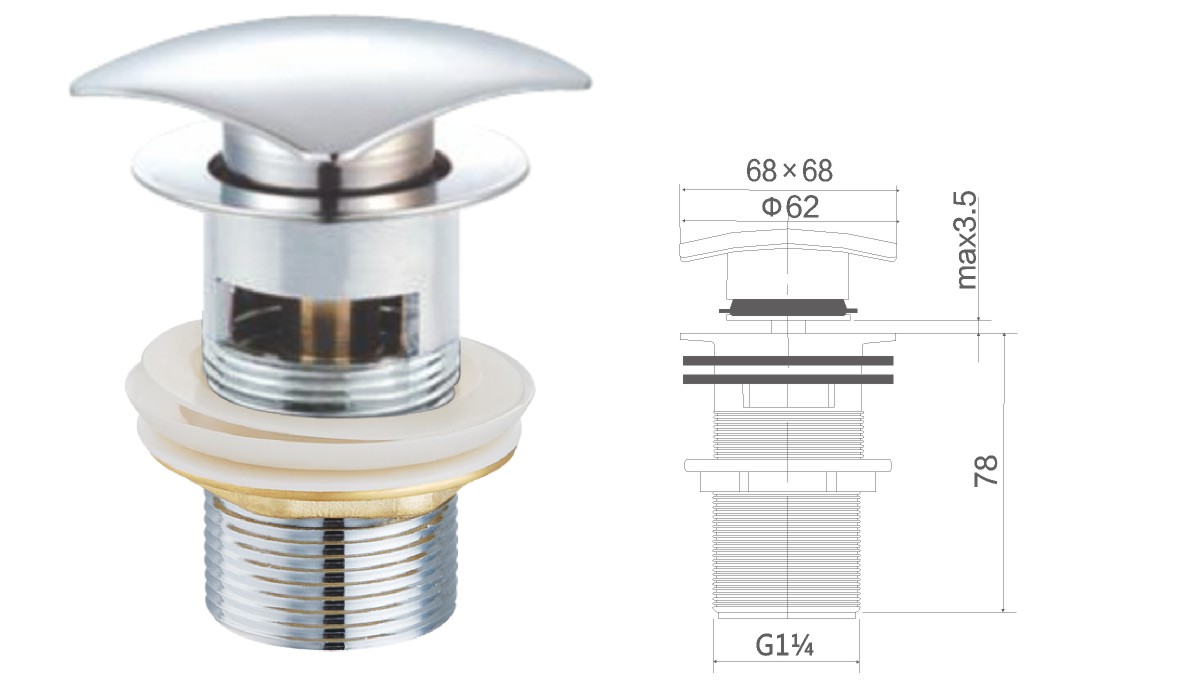 Stainless steel water for wash basin 1 1/4" clic-clac