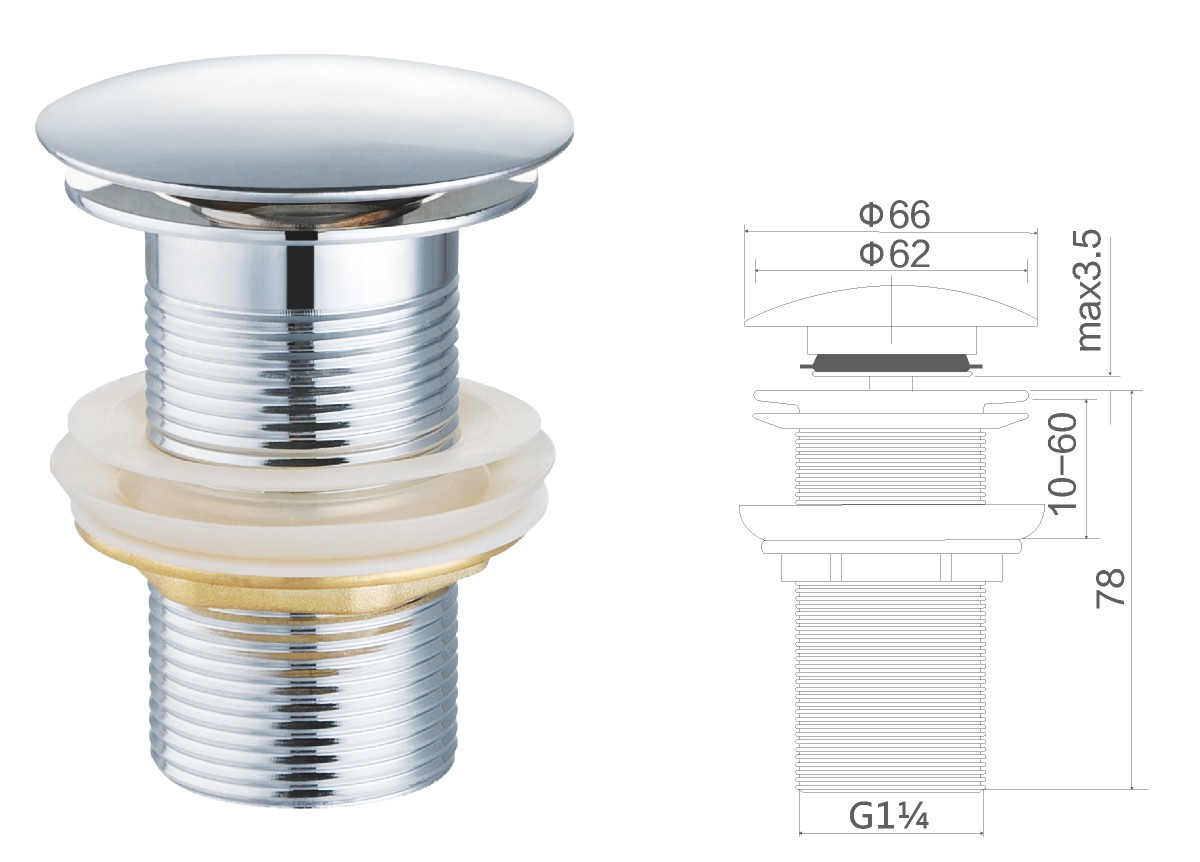 Stainless steel water for wash basin 1 1/4" clic-clac