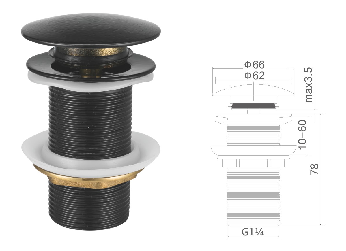 Stainless steel water for wash basin 1 1/4" clic-clac