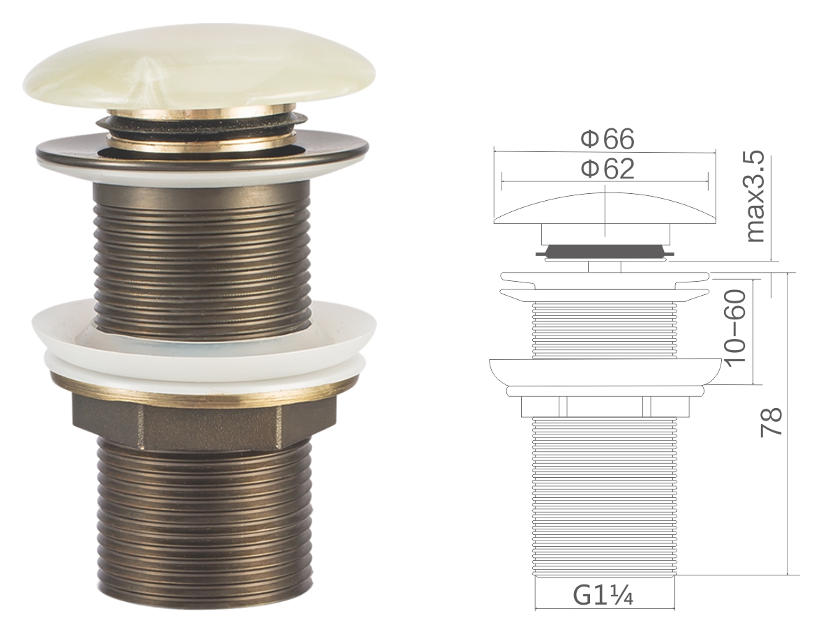 Stainless steel water for wash basin 1 1/4" clic-clac