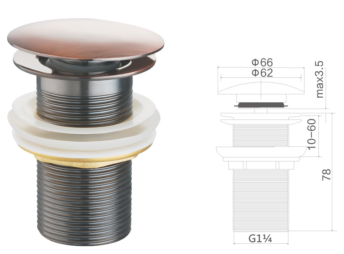 Brass waste for wash basin 1 1/4" clic-clac