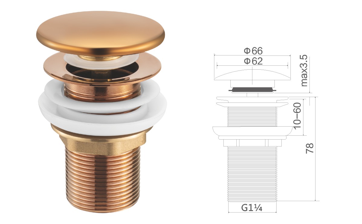 Stainless steel water for wash basin 1 1/4" clic-clac