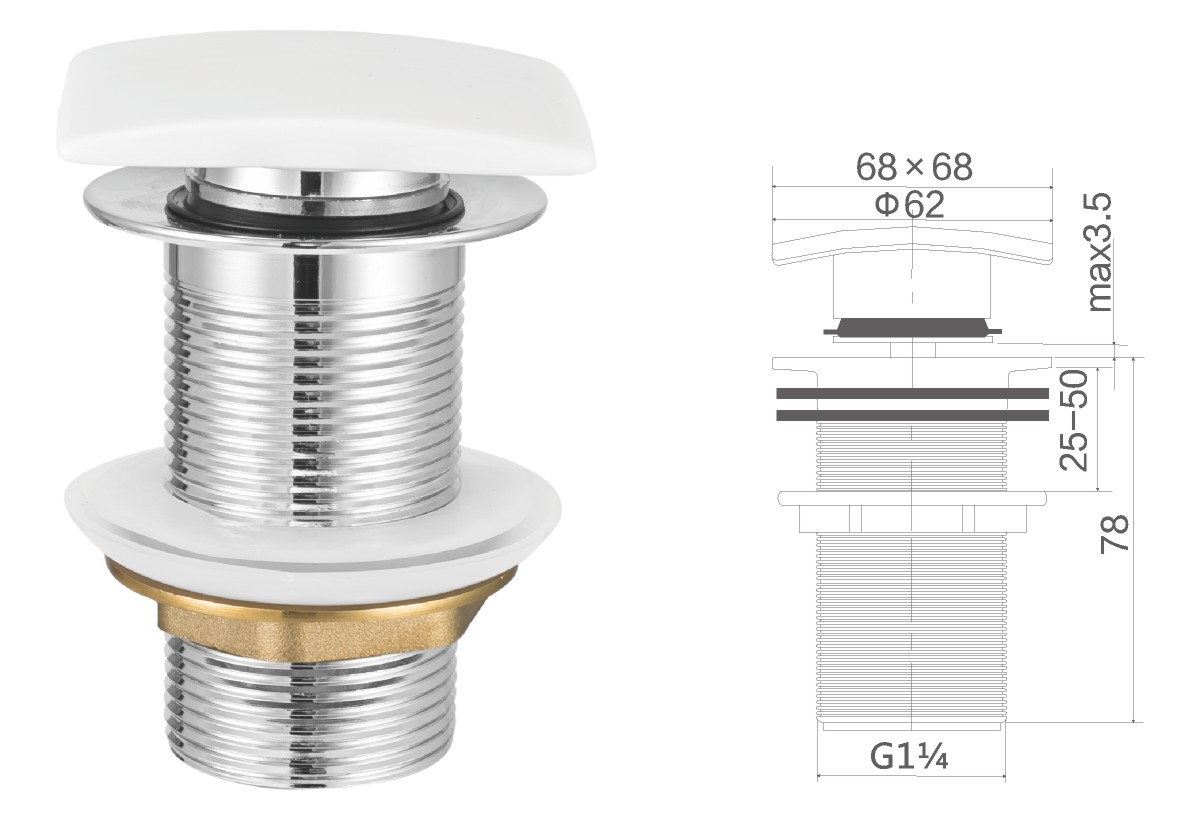 Stainless steel water for wash basin 1 1/4" clic-clac