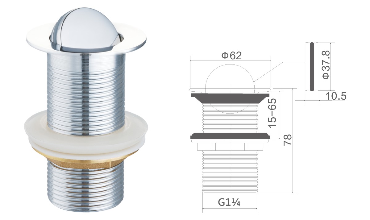 Brass waste for wash basin 1 1/4" clic-clac