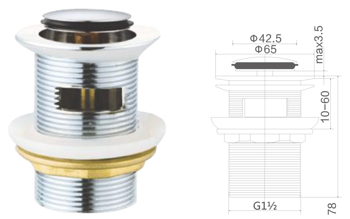 Stainless steel water for wash basin 1 1/4" clic-clac
