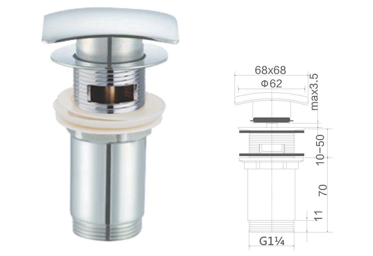 Stainless steel water for wash basin 1 1/4" clic-clac