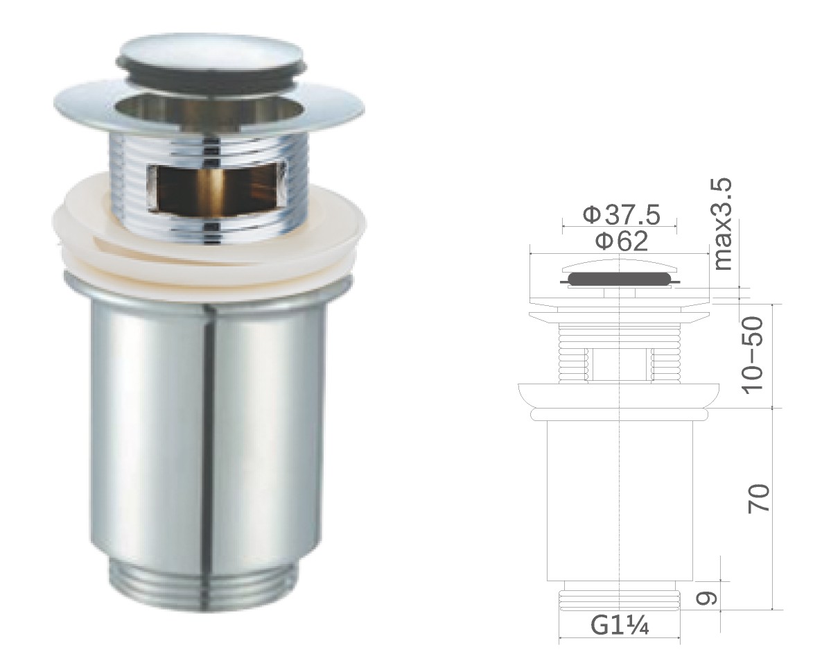 Brass waste for wash basin 1 1/4" clic-clac