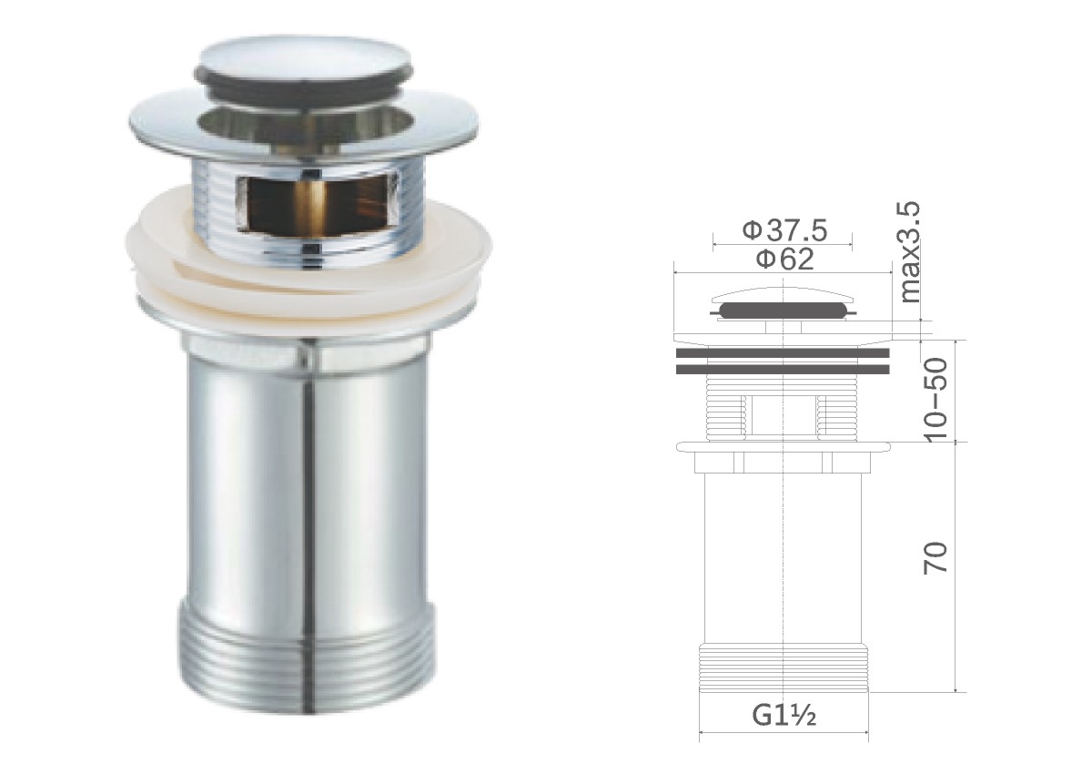 Stainless steel water for wash basin 1 1/4" clic-clac