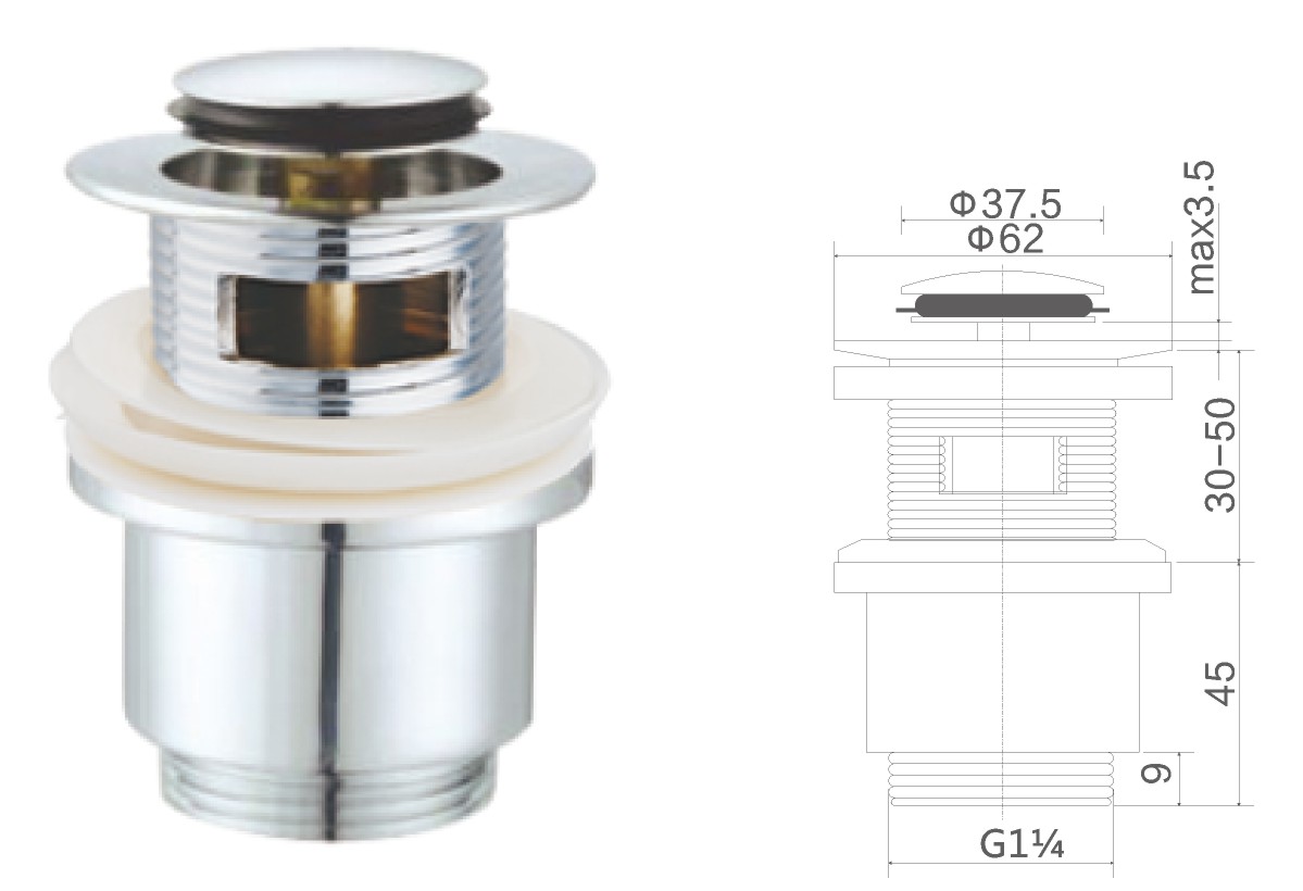 Brass waste for wash basin 1 1/4" clic-clac