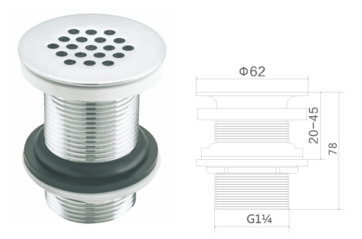 Stainless steel water for wash basin 1 1/4" clic-clac