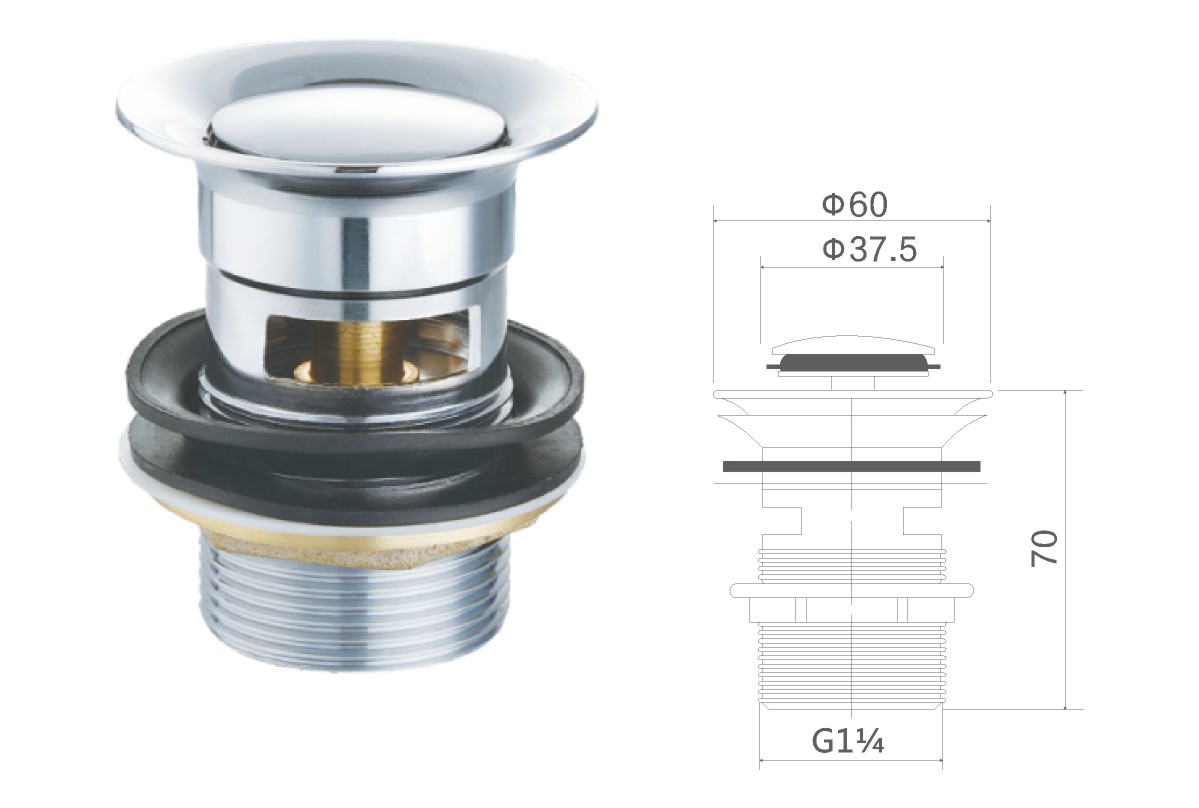Stainless steel water for wash basin 1 1/4" clic-clac
