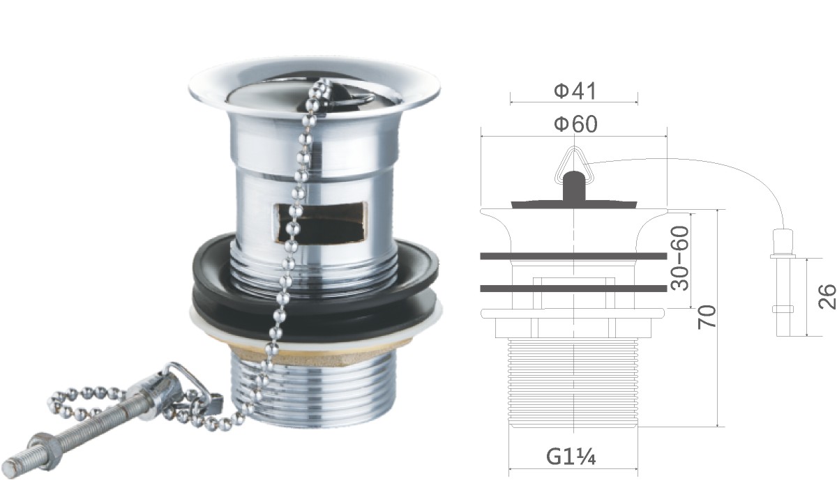 Stainless steel water for wash basin 1 1/4" clic-clac