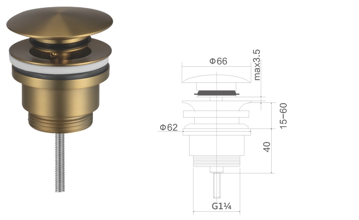 Brass waste for wash basin 1 1/4" clic-clac