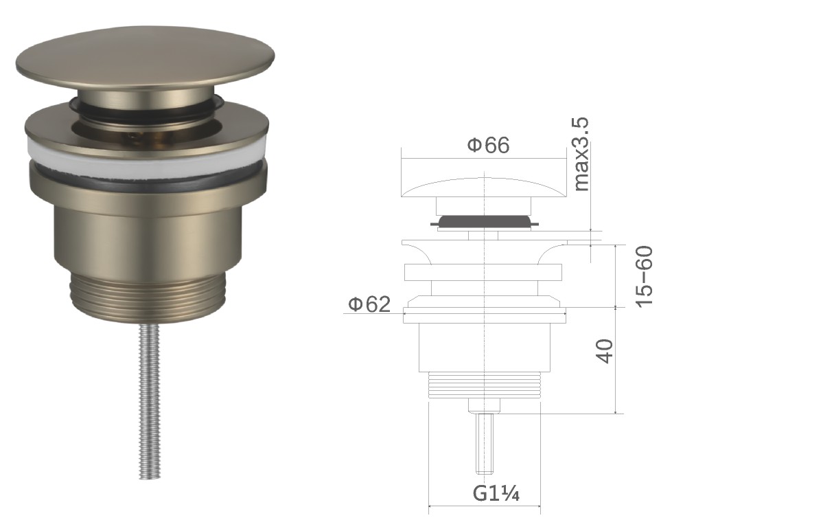 Stainless steel water for wash basin 1 1/4" clic-clac