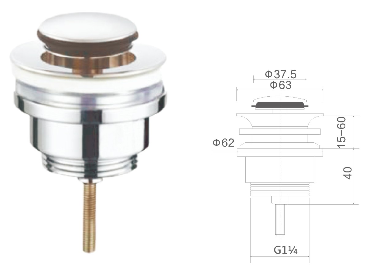 Brass waste for wash basin 1 1/4" clic-clac