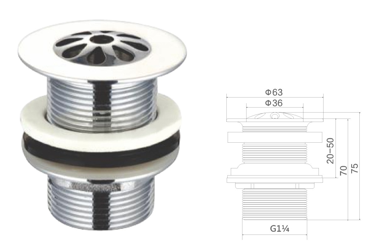 Brass water for public wash basin 1 1/4" fixed cover not clic-clac