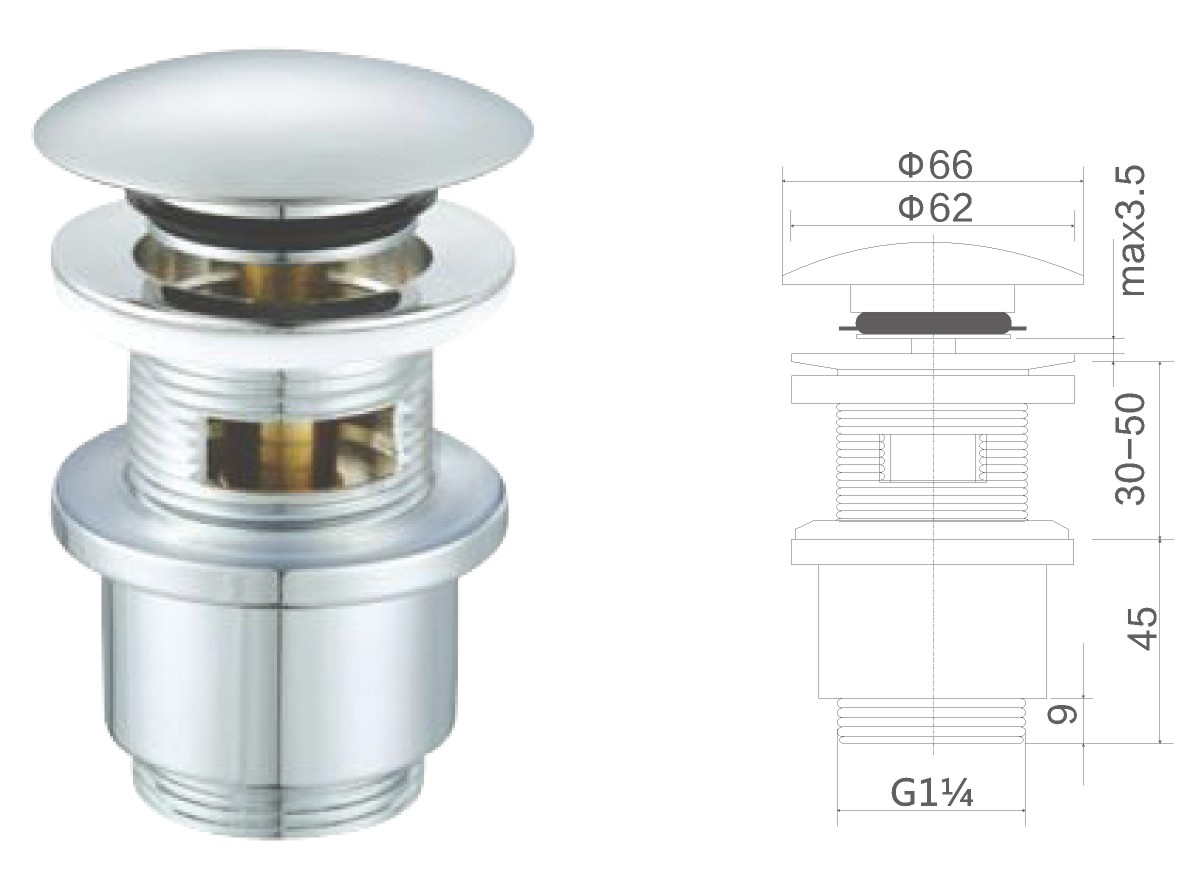 Brass waste for wash basin 1 1/4" clic-clac