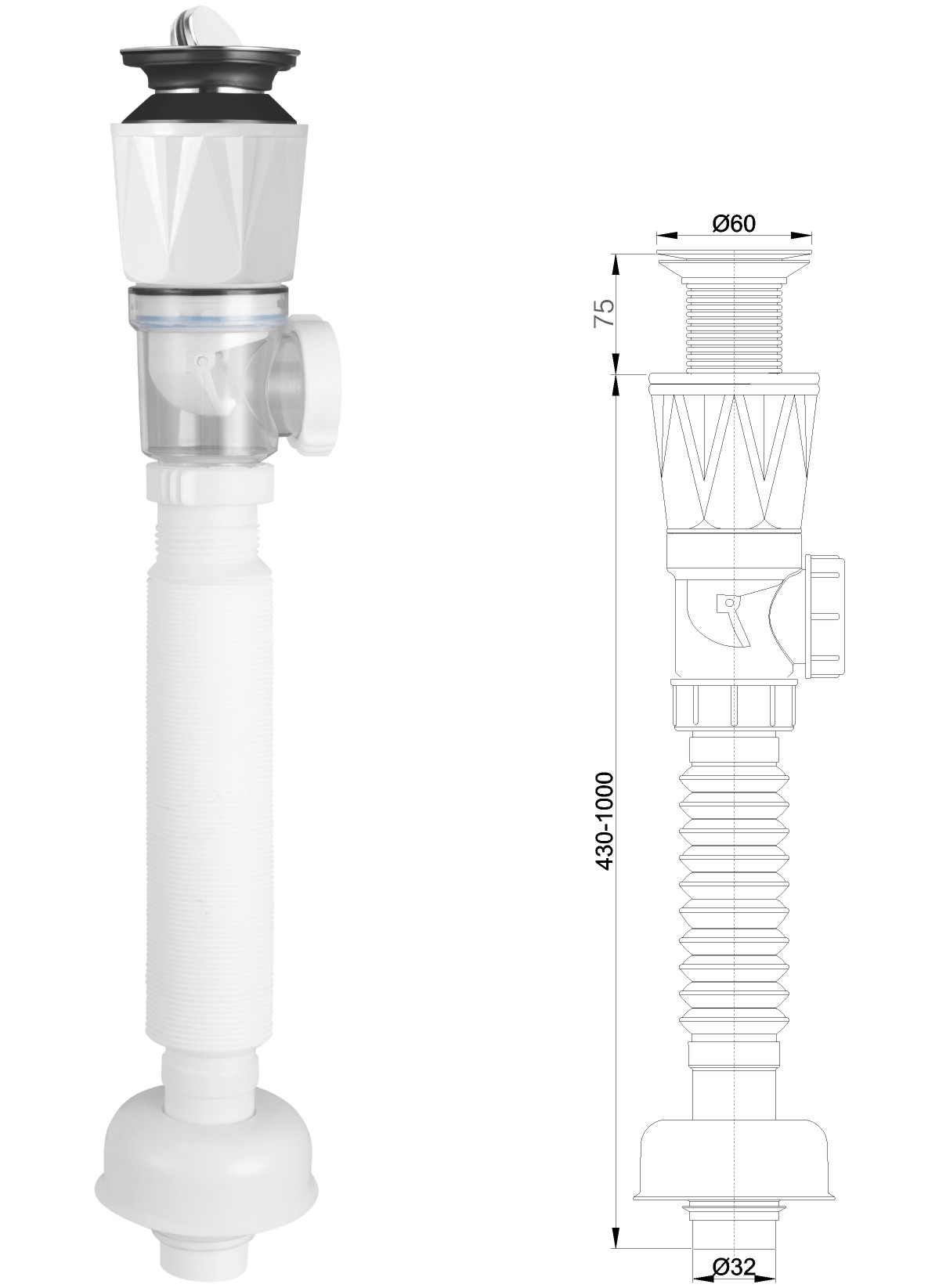 Stainless steel water for wash basin 1 1/4" clic-clac