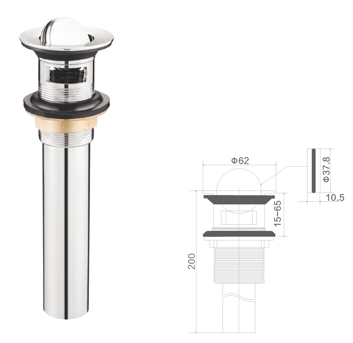 Stainless steel water for wash basin 1 1/4" clic-clac