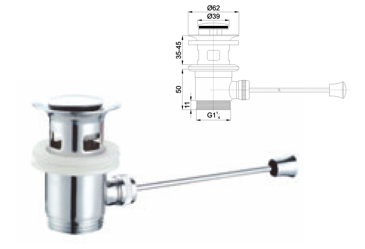 Stainless steel water for wash basin 1 1/4" clic-clac