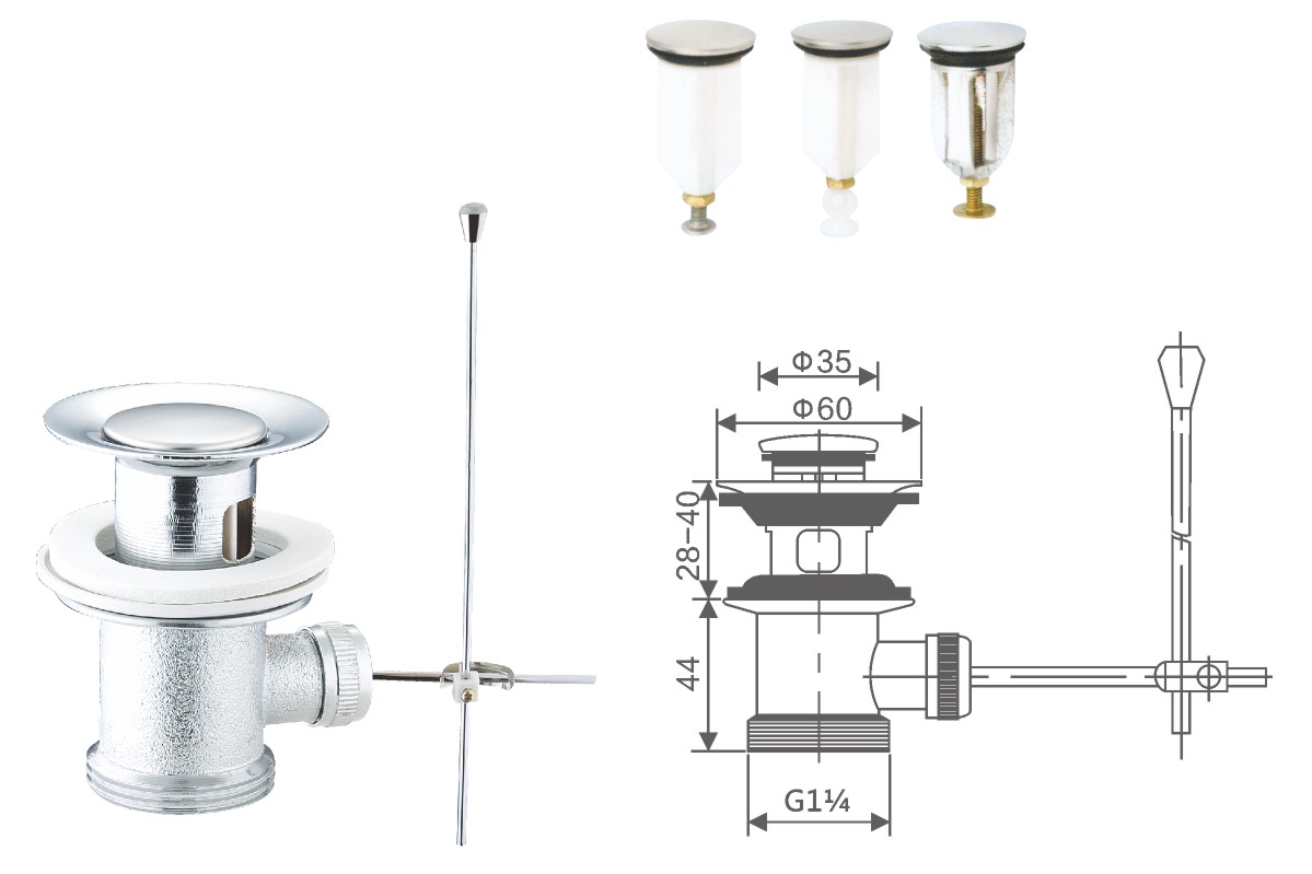 Stainless steel water for wash basin 1 1/4" clic-clac