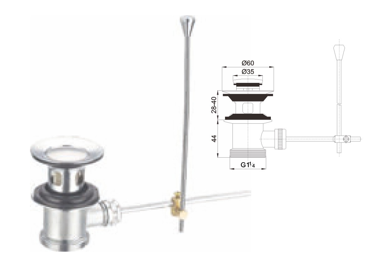 Brass waste for wash basin 1 1/4" clic-clac