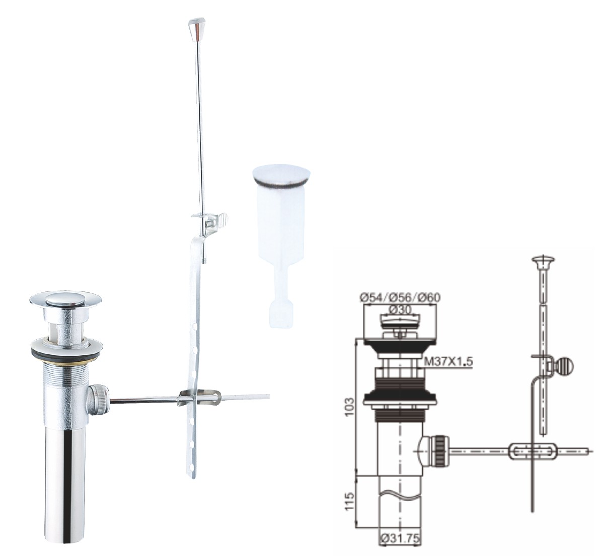 Brass waste for wash basin 1 1/4" clic-clac