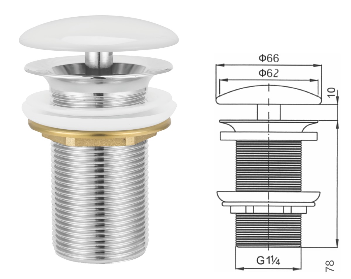 Stainless steel water for wash basin 1 1/4" clic-clac