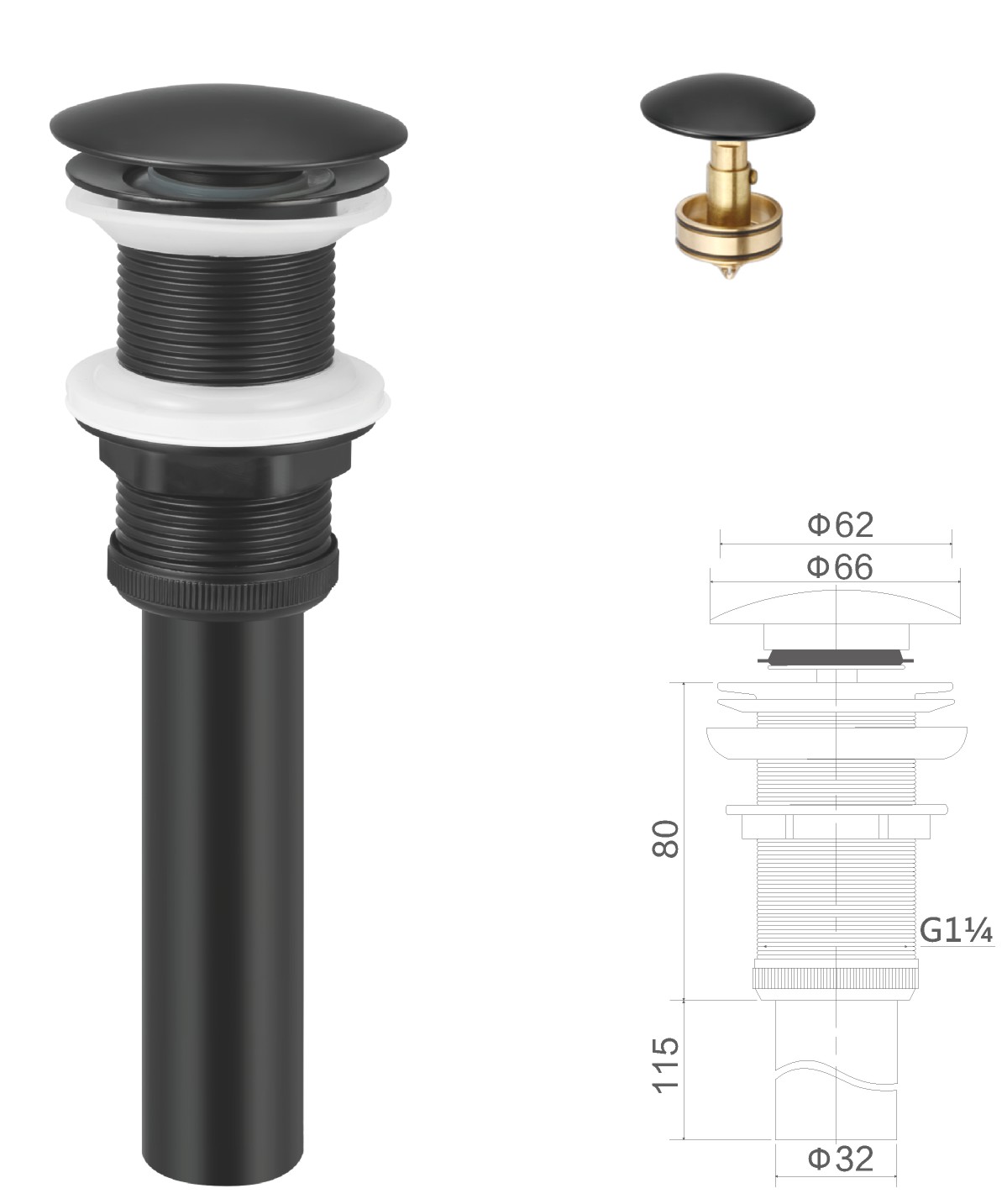 Stainless steel water for wash basin 1 1/4" clic-clac