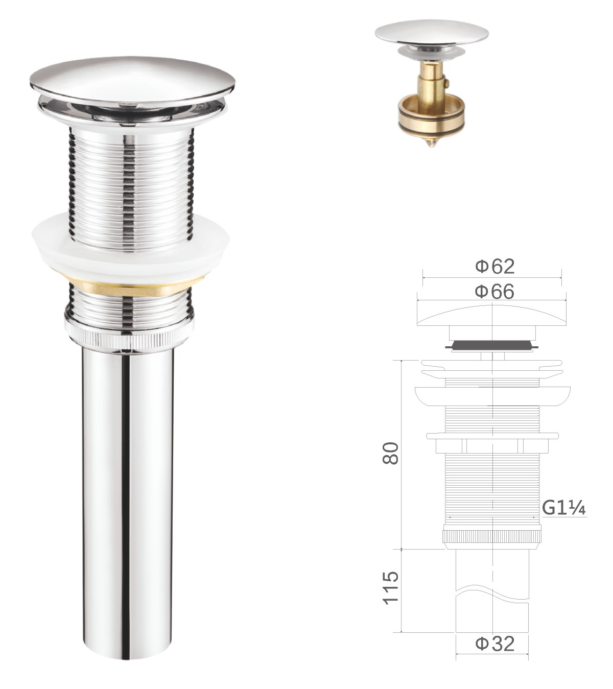 Stainless steel water for wash basin 1 1/4" clic-clac