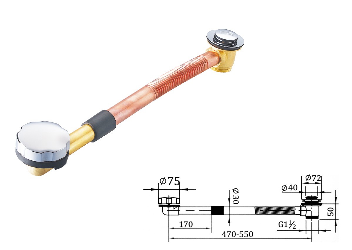 Brass water for bathtub 1 1/2",clic-clac