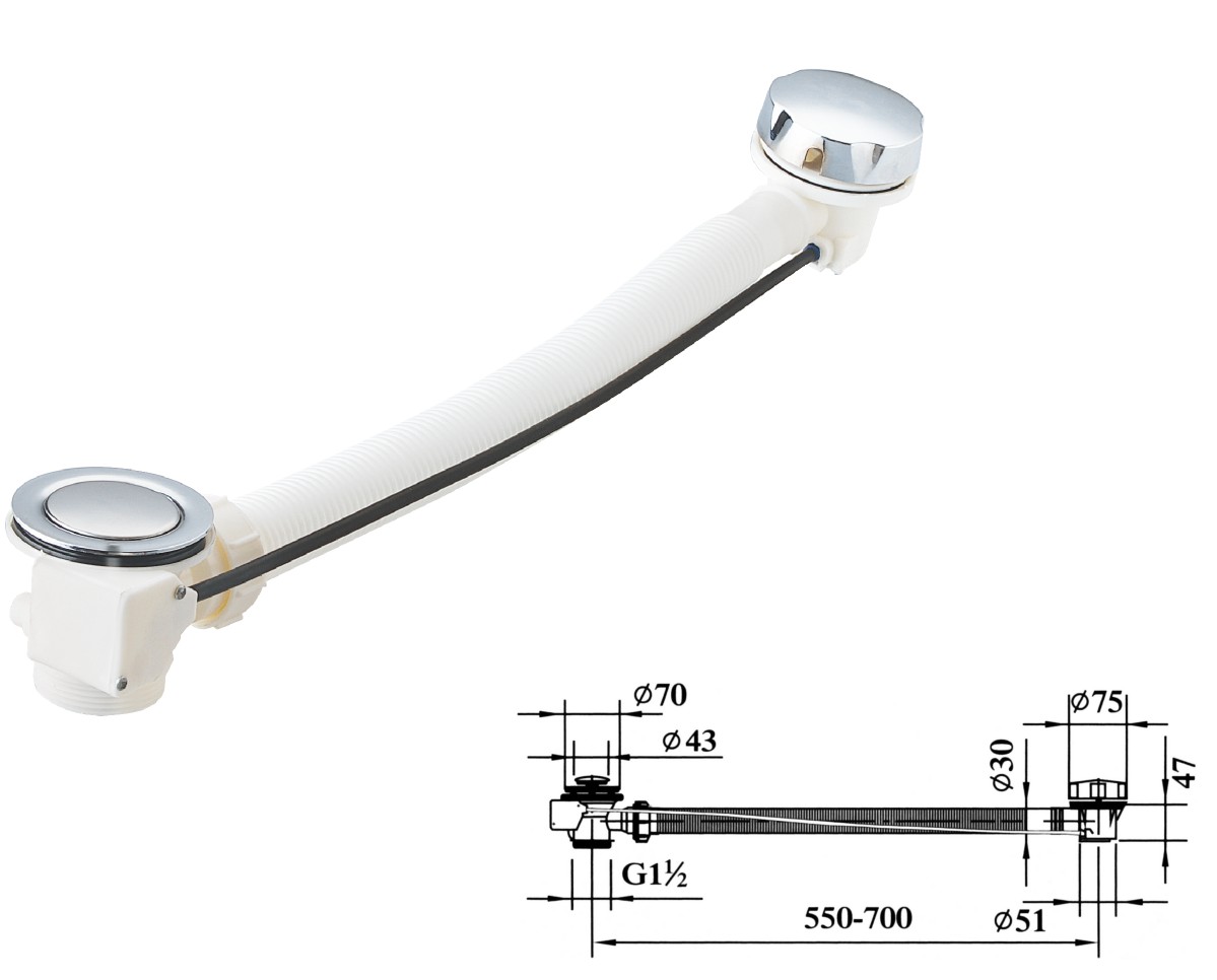 Brass water for bathtub 1 1/2",clic-clac