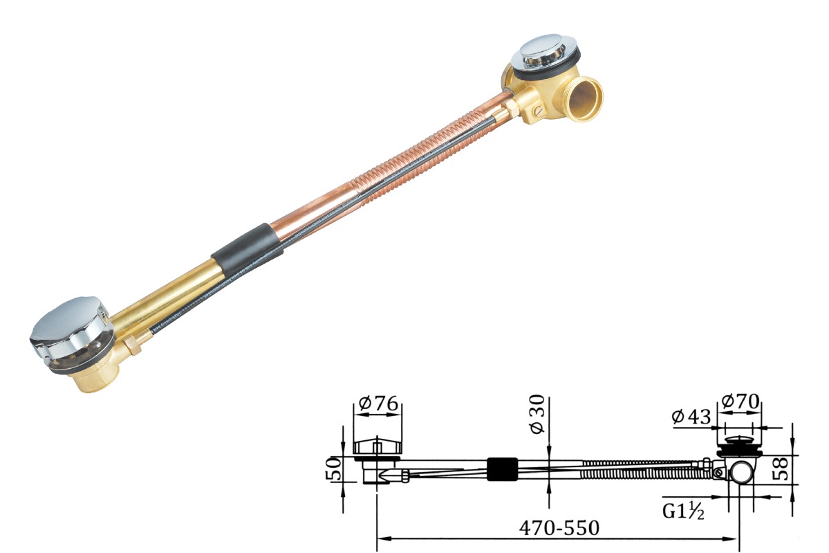 Brass water for bathtub 1 1/2",clic-clac