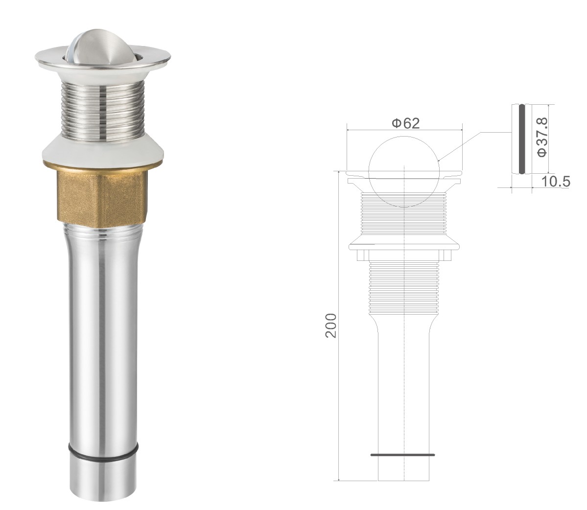 Stainless steel water for wash basin 1 1/4" clic-clac