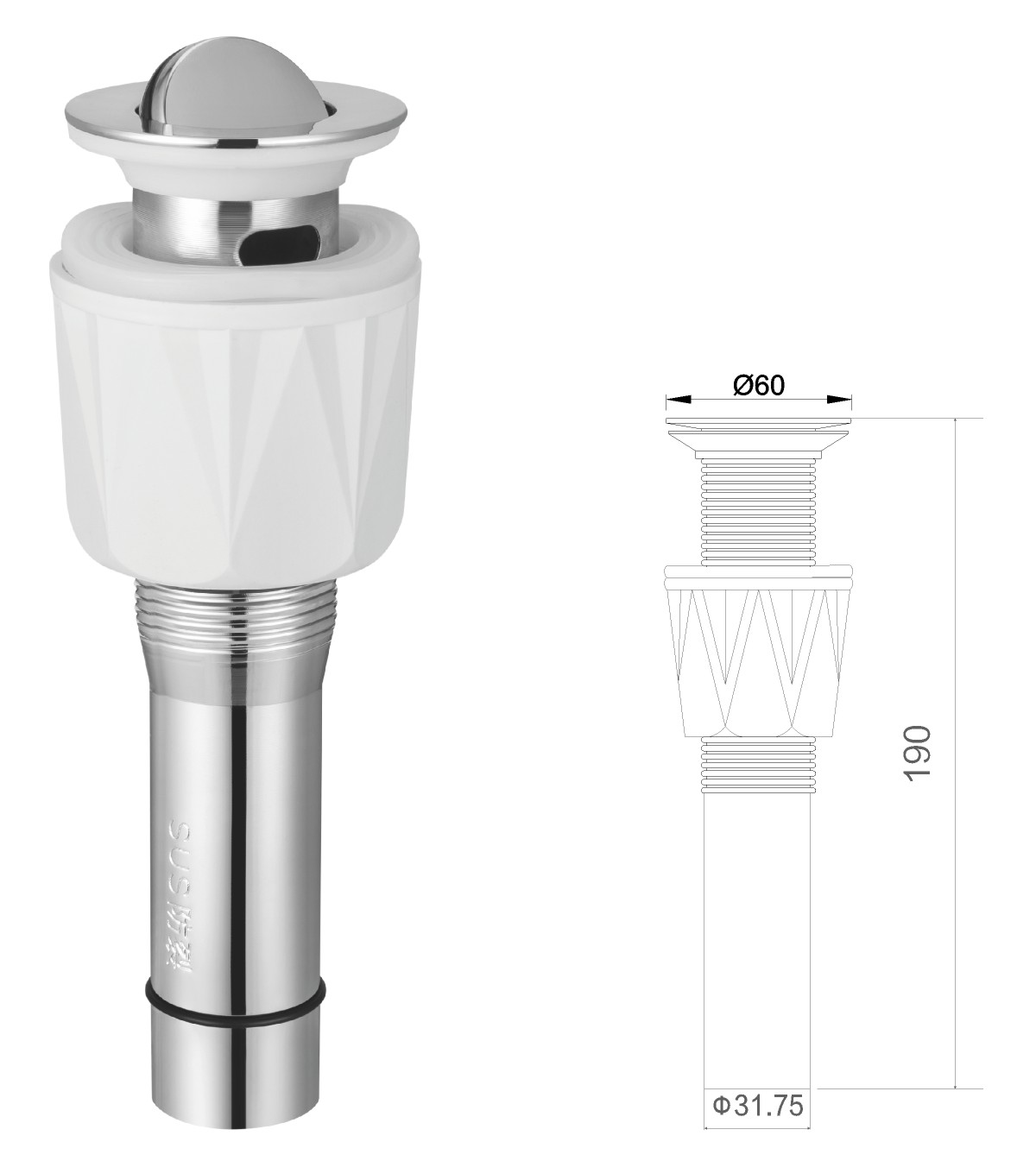 Stainless steel water for wash basin 1 1/4" clic-clac
