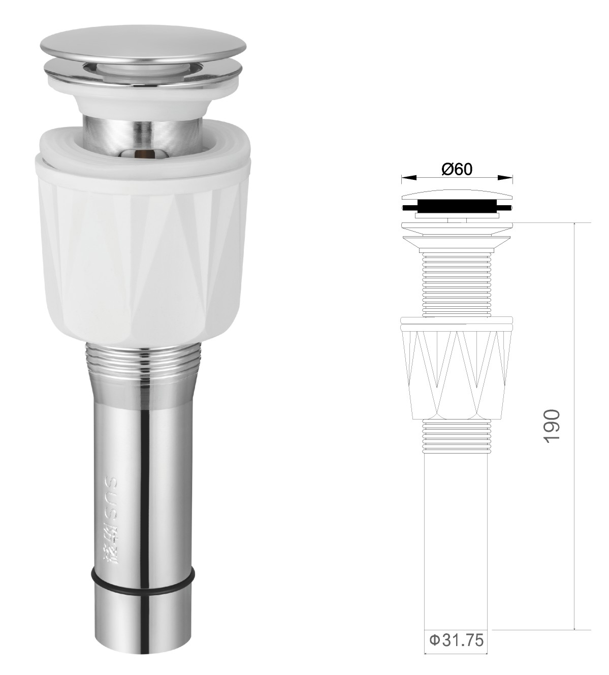 Stainless steel water for wash basin 1 1/4" clic-clac