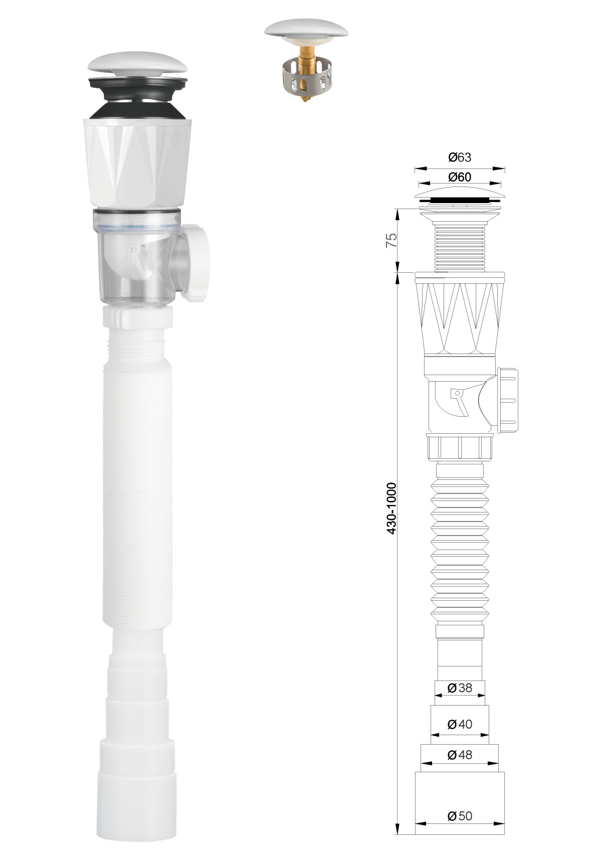 Stainless steel water for wash basin 1 1/4" clic-clac