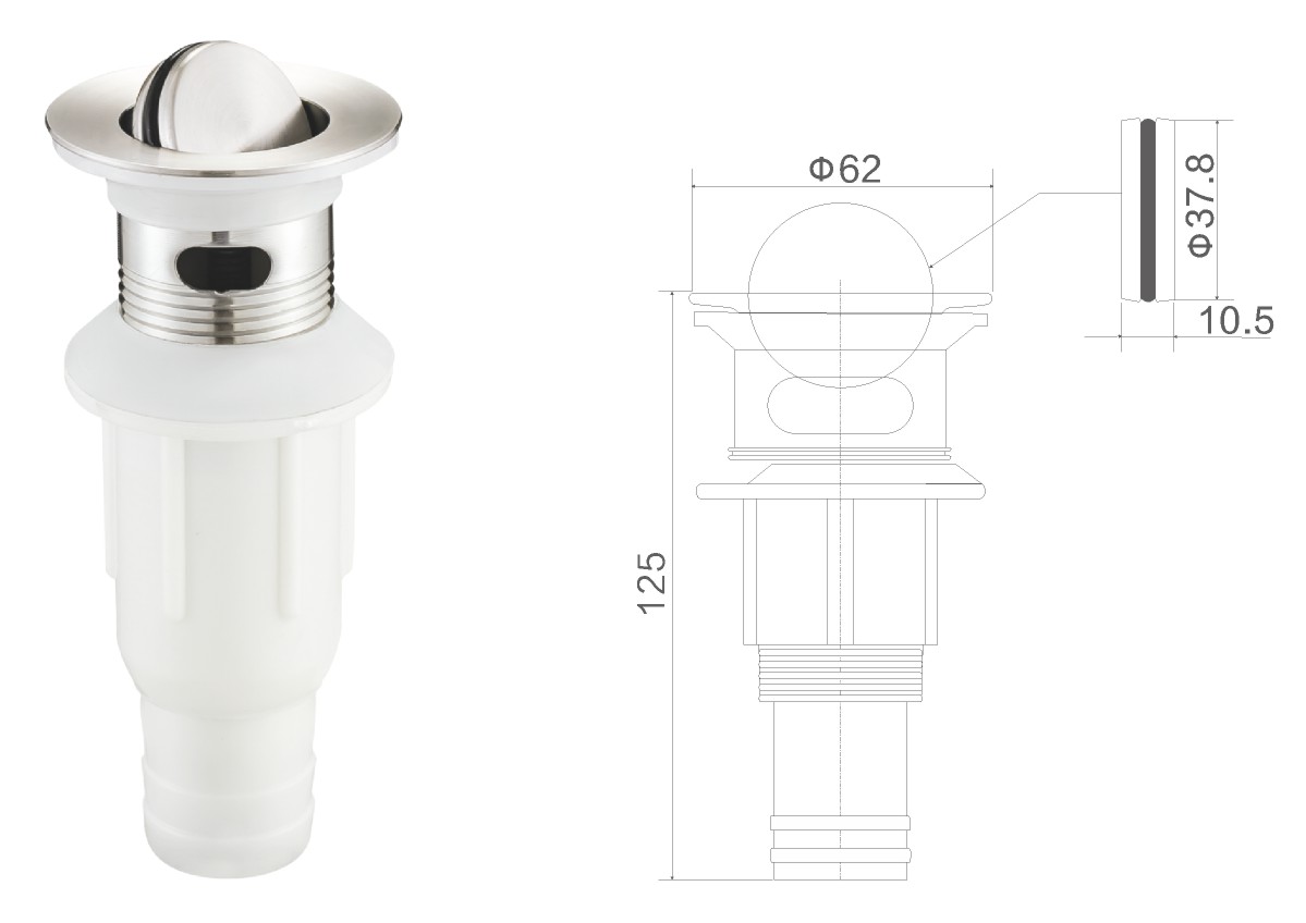 Stainless steel water for wash basin 1 1/4" clic-clac