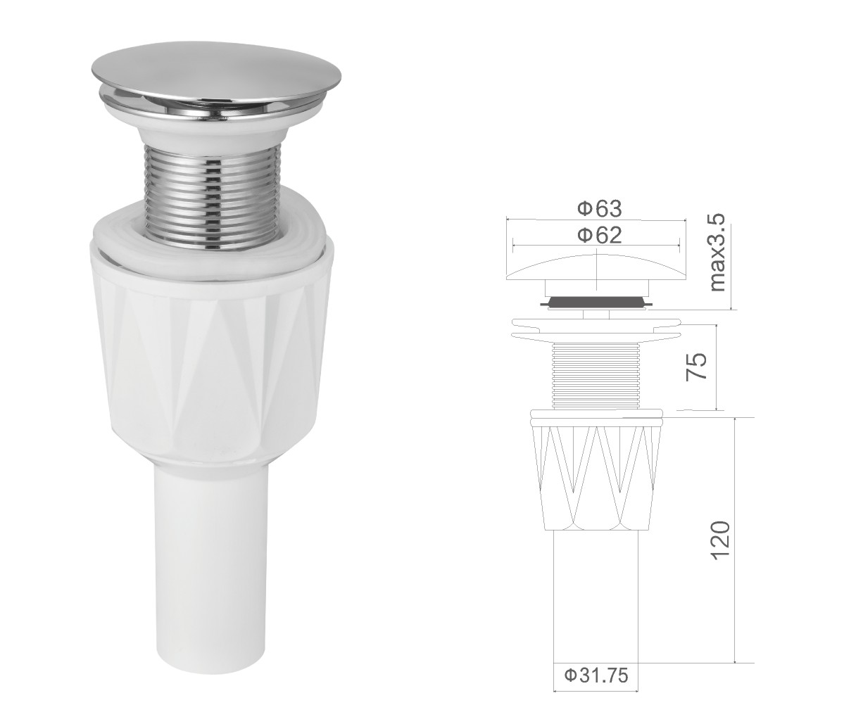 Brass waste for wash basin 1 1/4" clic-clac