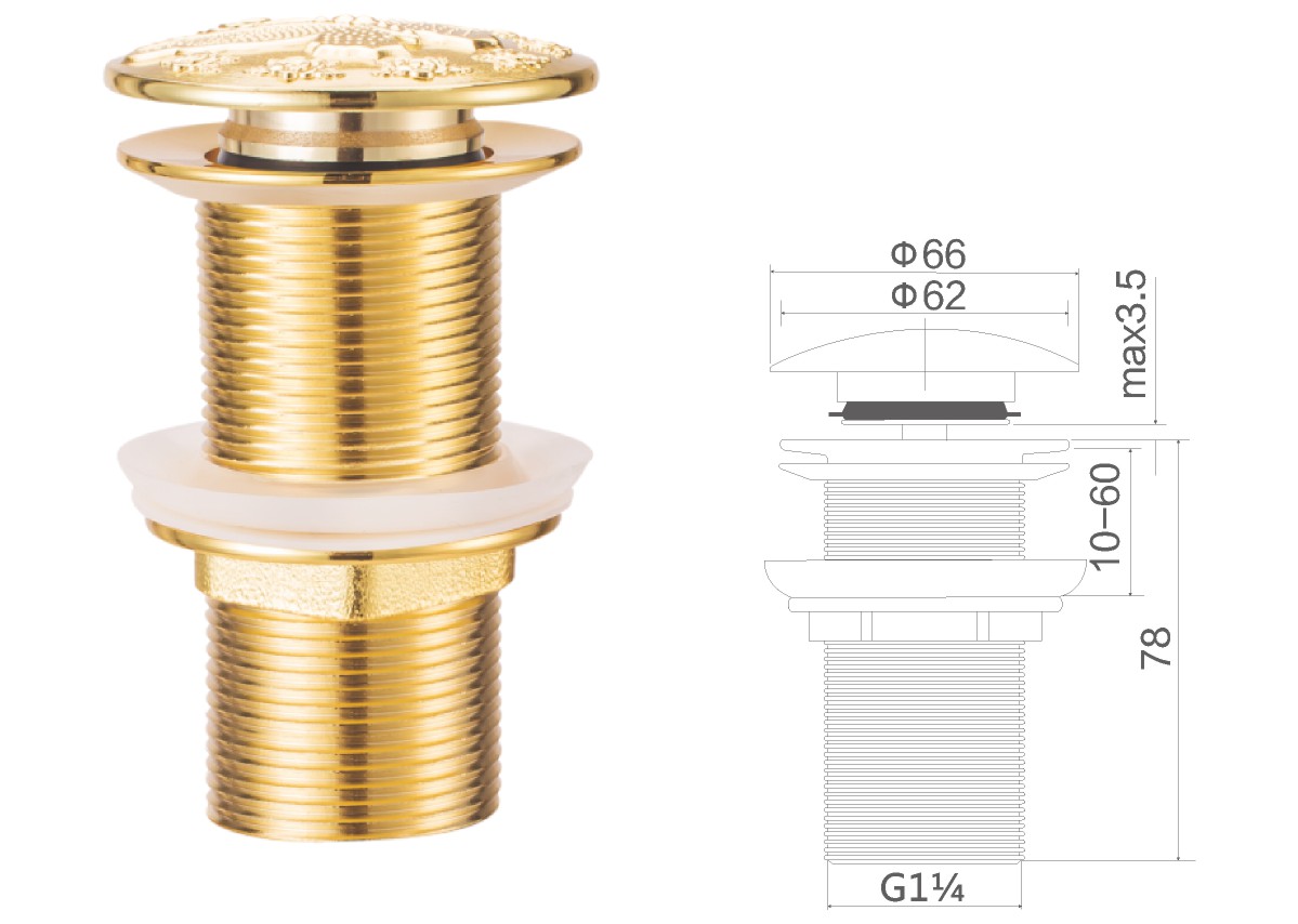 Brass water for public wash basin 1 1/4" fixed cover not clic-clac
