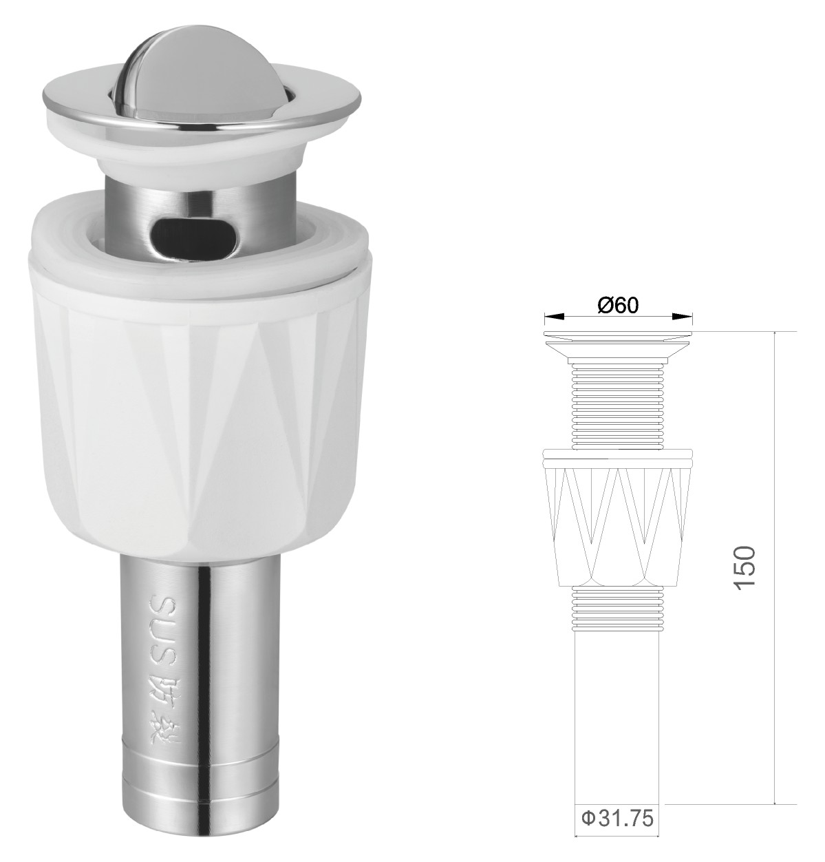 Stainless steel water for wash basin 1 1/4" clic-clac
