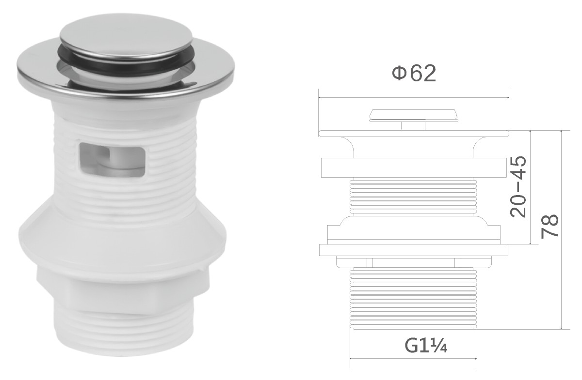 Stainless steel water for wash basin 1 1/4" clic-clac