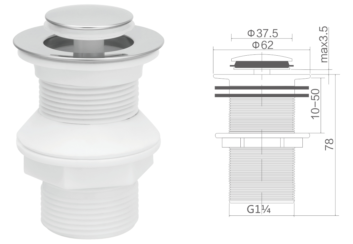 Stainless steel water for wash basin 1 1/4" clic-clac