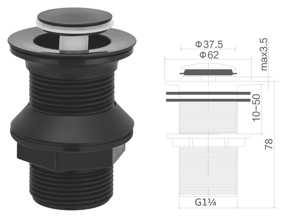 Brass waste for wash basin 1 1/4" clic-clac