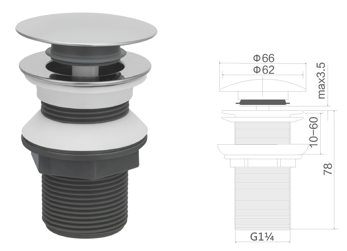 Stainless steel water for wash basin 1 1/4" clic-clac