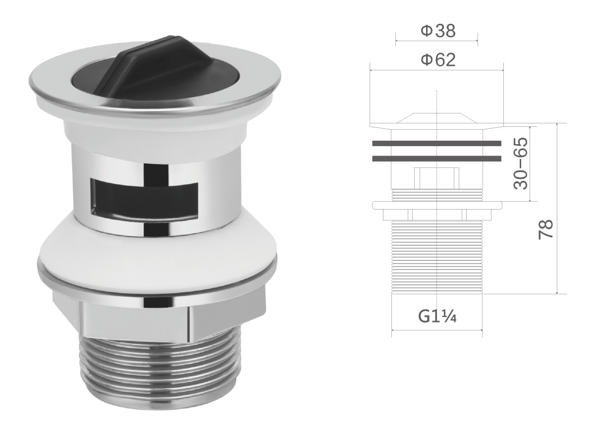 Stainless steel water for wash basin 1 1/4" clic-clac