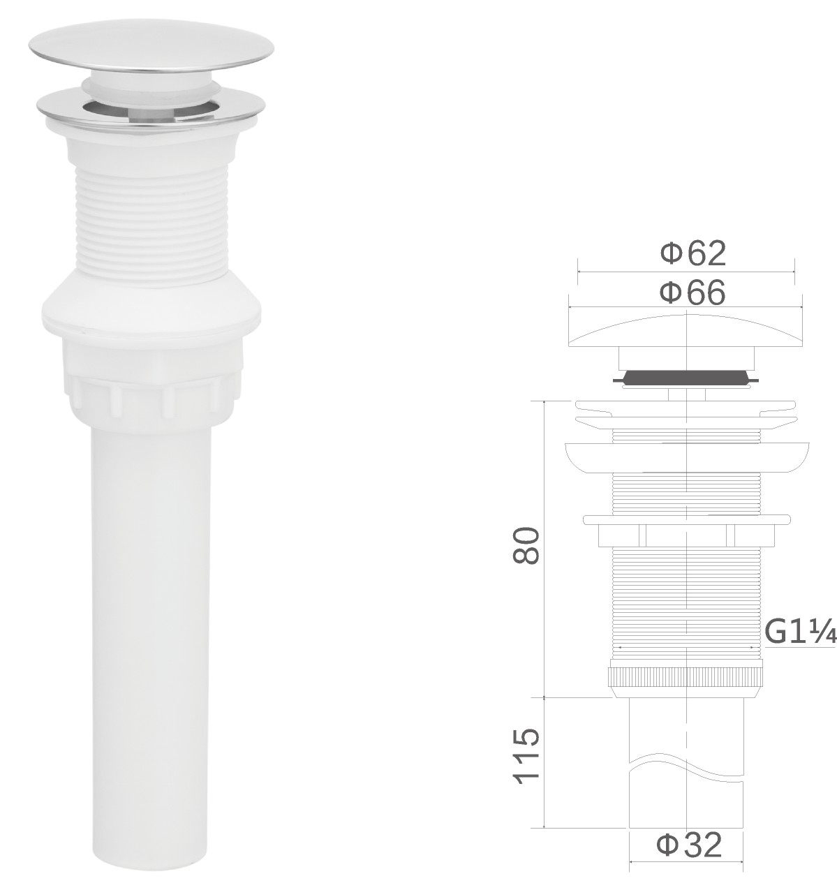 Stainless steel water for wash basin 1 1/4" clic-clac