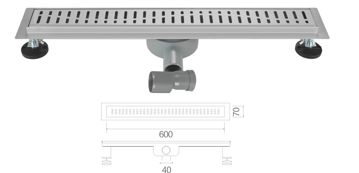 Length Range: 500mm To 2000mm Width: 70mm Flange Width: 20mm Outlet Size: φ40 Flow rates: 30L /Min Adjustable Height: 69-124mm