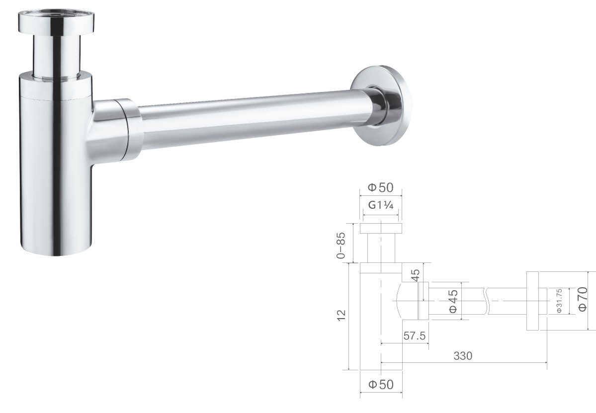 Stainless steel 304 siphon 1 1/4"